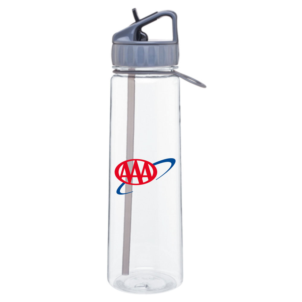 30-oz. single wall BPA-free Eastman Tritan™ copolyester bottle with flip-up straw, silicone grip and carrying loop. Hand wash recommended. Do not microwave.